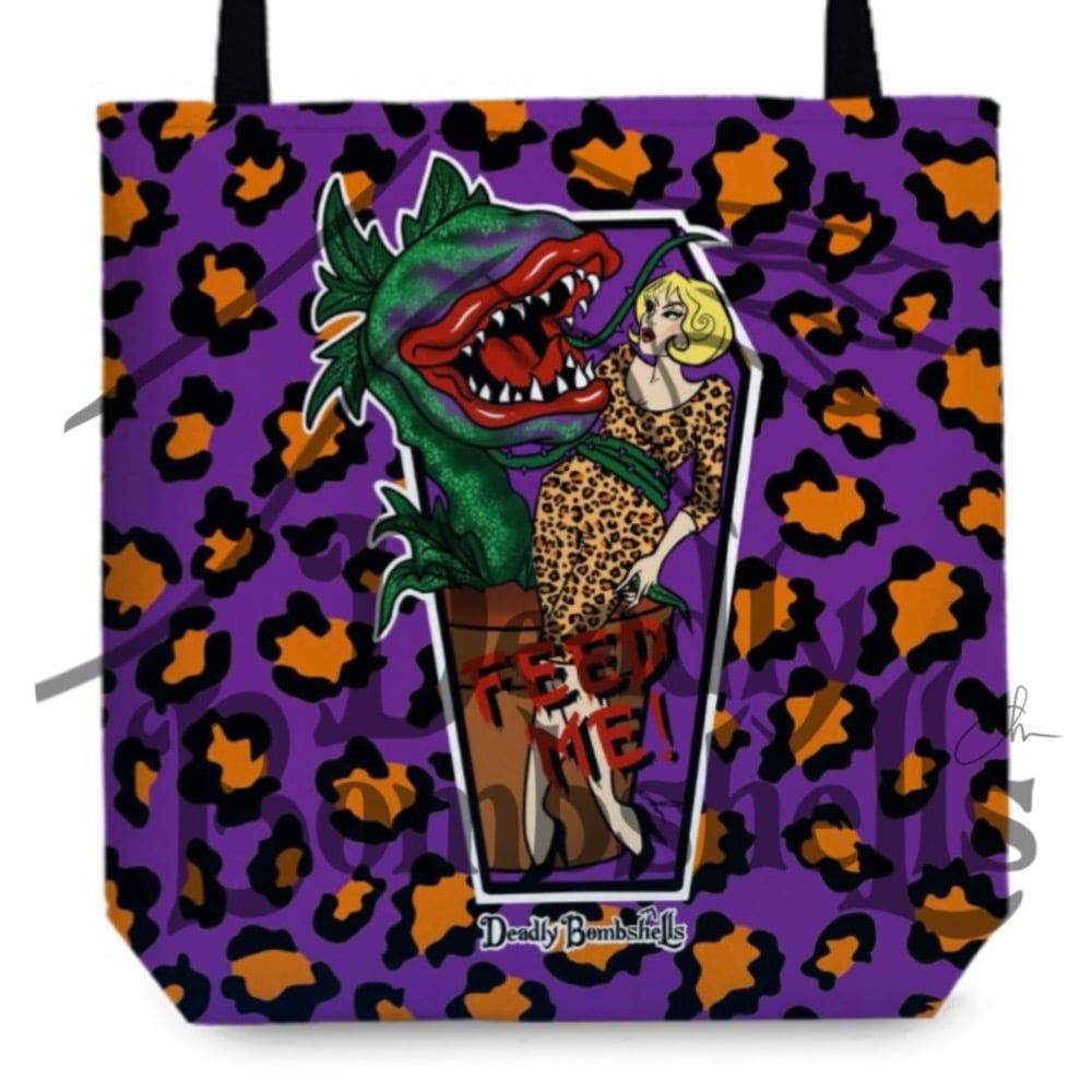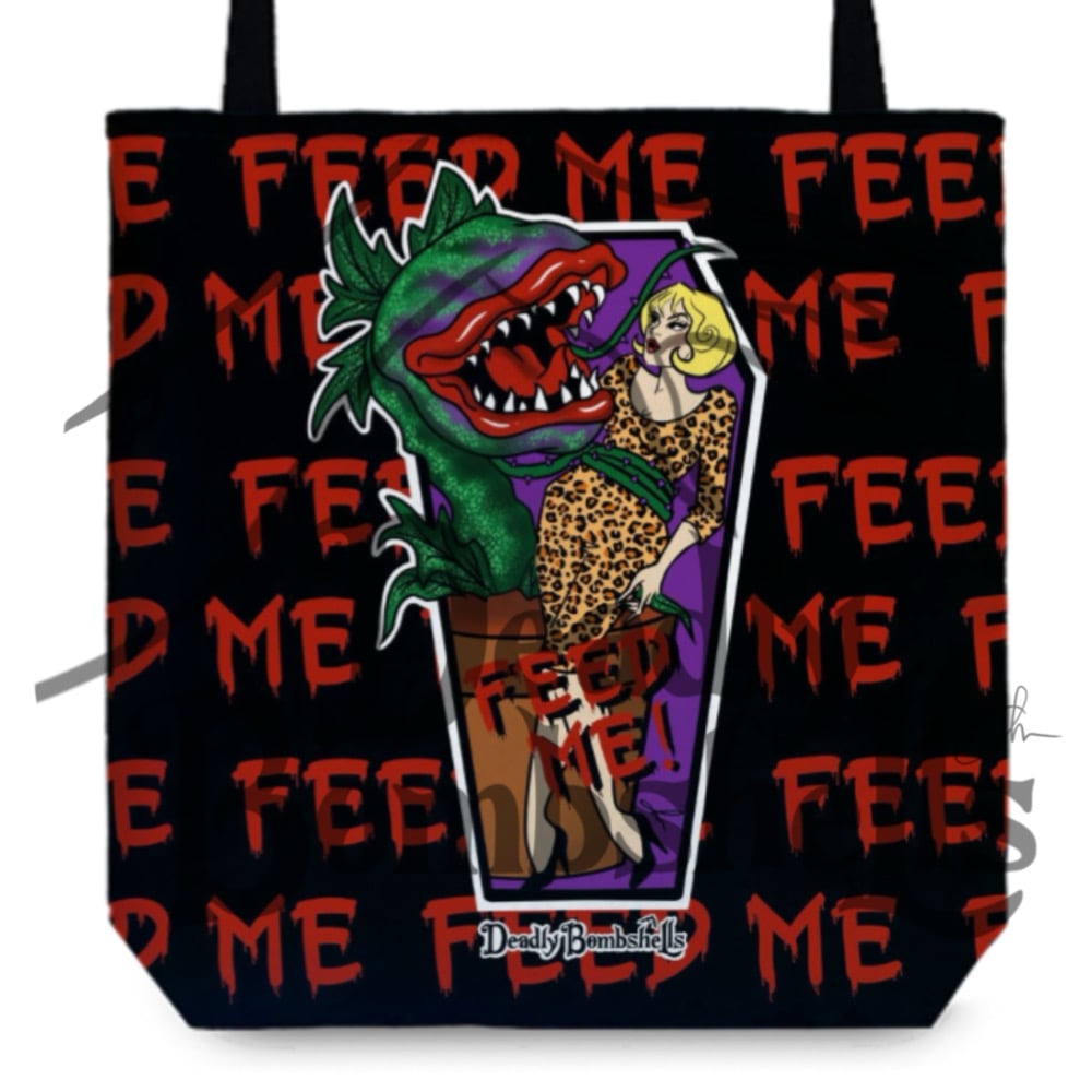 Eat Me Original Illustration Printed on 16" x 16" Premium durable spun polyester tote bag with traditional straps. ( same image is printed on both sides).