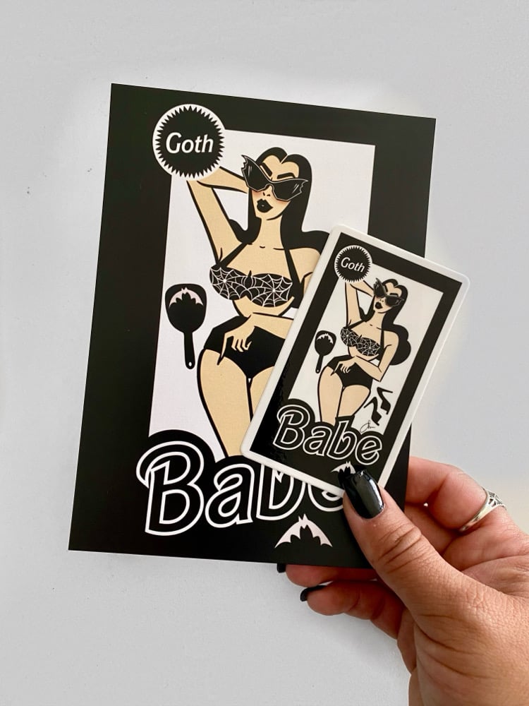 Goth Babe Art Print & Sticker featuring Original Artwork.