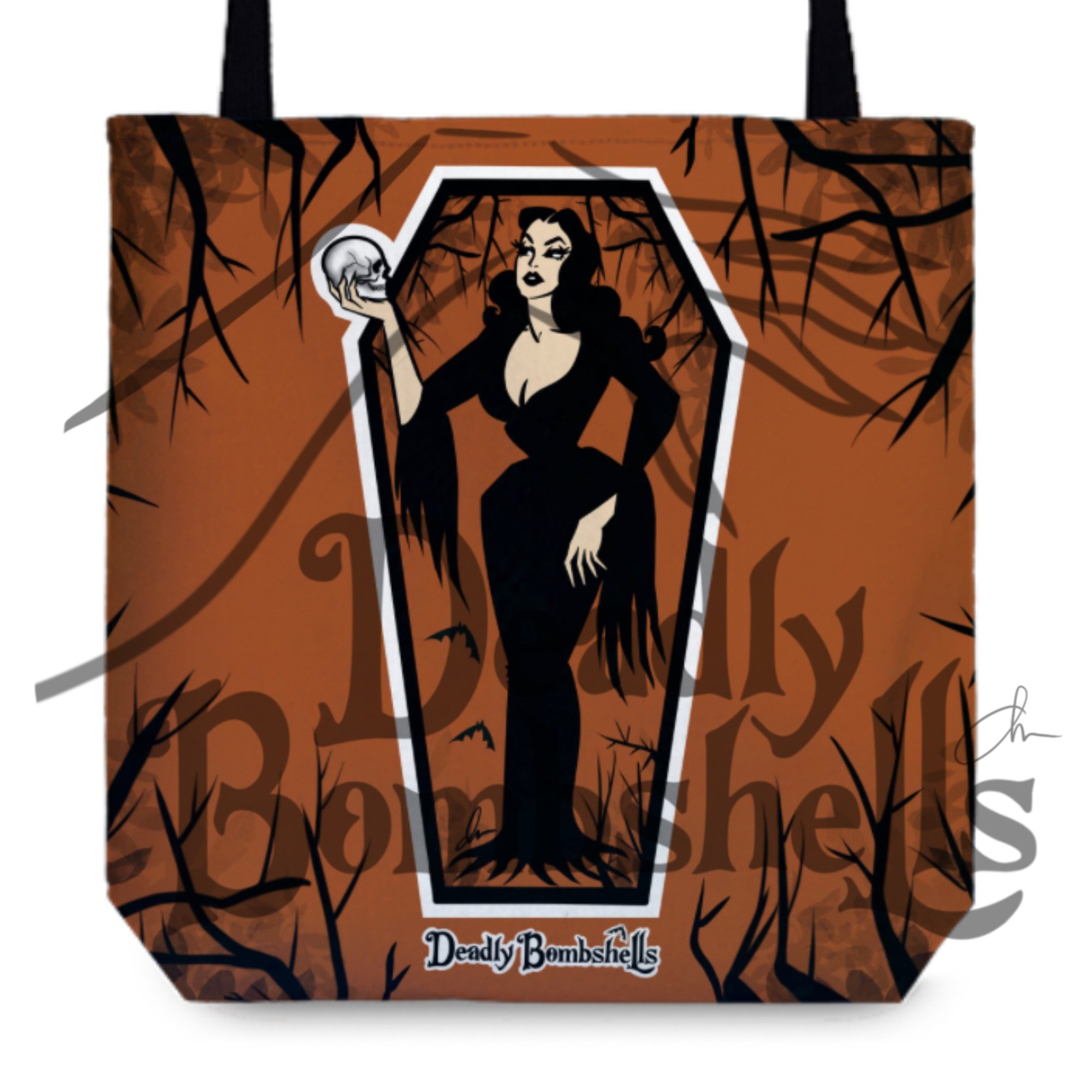 Vamp Original Illustration Printed on 16" x 16" Premium durable spun polyester tote bag with traditional straps. ( same image is printed on both sides).